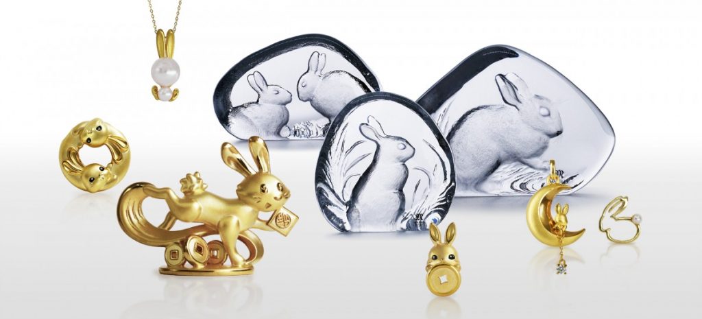 客戶可以根據合格存款的金額,獲得今年的兔年厚禮:除了陳維平設計的24K純金“2023兔來金運到”擺飾之外,還包括18K金“俏兔”金墜、24K純金“開元福兔”金墜、24K純金“雙兔成圓”金墜、24K純金“珠光寶兔”金墜 + 18K金鏈、24K純金“月兔”金墜以及 Mats Jonasson “栩栩祥兔”水晶擺飾組合,極具紀念和收藏意義。