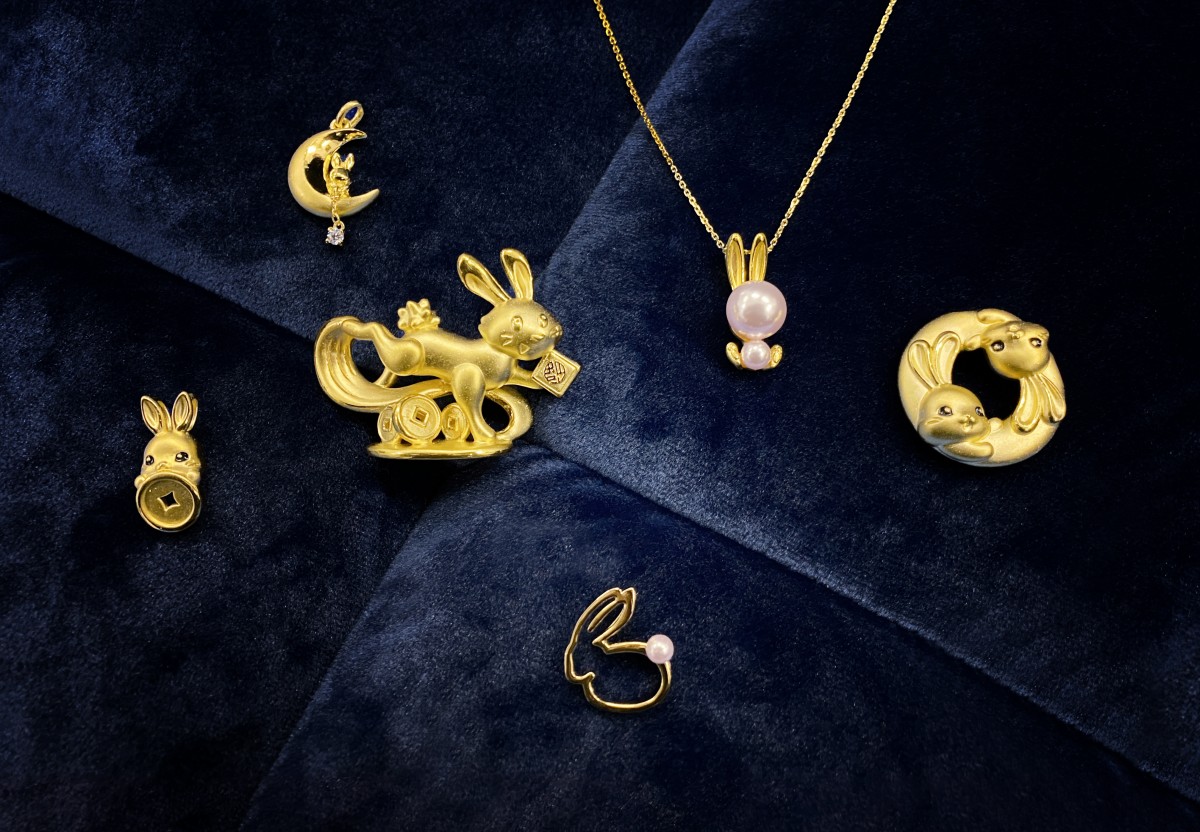 客戶可以根據合格存款的金額,獲得今年的兔年厚禮:包括18K金“俏兔”金墜、24K純金“開元福兔”金墜、 24K純金“雙兔成圓”金墜、24K純金“珠光寶兔”金墜 + 18K金鏈、24K純金“月兔”金墜、 Mats Jonasson “栩栩祥兔”水晶擺飾組合、以及華裔設計師陳維平設計的24K純金“2023兔來金運到”擺飾。