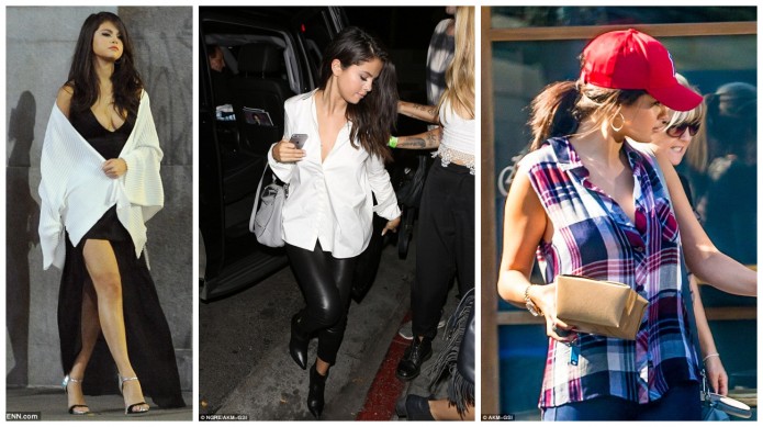 女神Selena每天都在創造成功的街拍搭配典範,甚至是晚上低調出門和三五朋友聚餐。和前段時間的Bra裝風格不太一樣。Selena又證明了自己穿著簡單襯衣也一樣很有范兒。週四晚上在洛城的西好萊塢的The