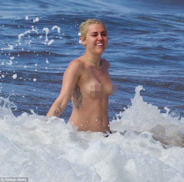 又脫了! Miley Cyrus上身全裸與男友海灘戲水
