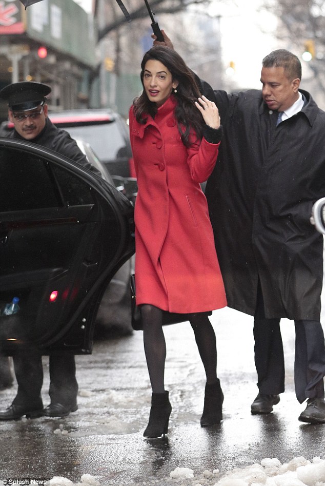 Amal Clooney桃紅色大衣對抗陰冷紐約